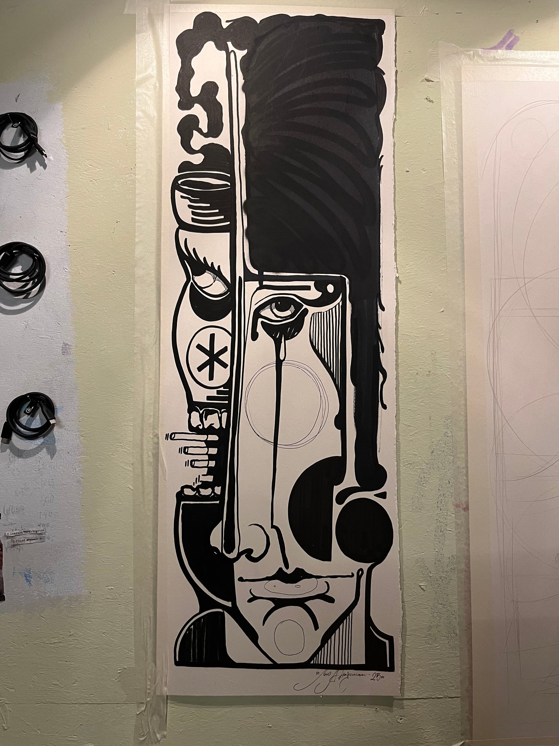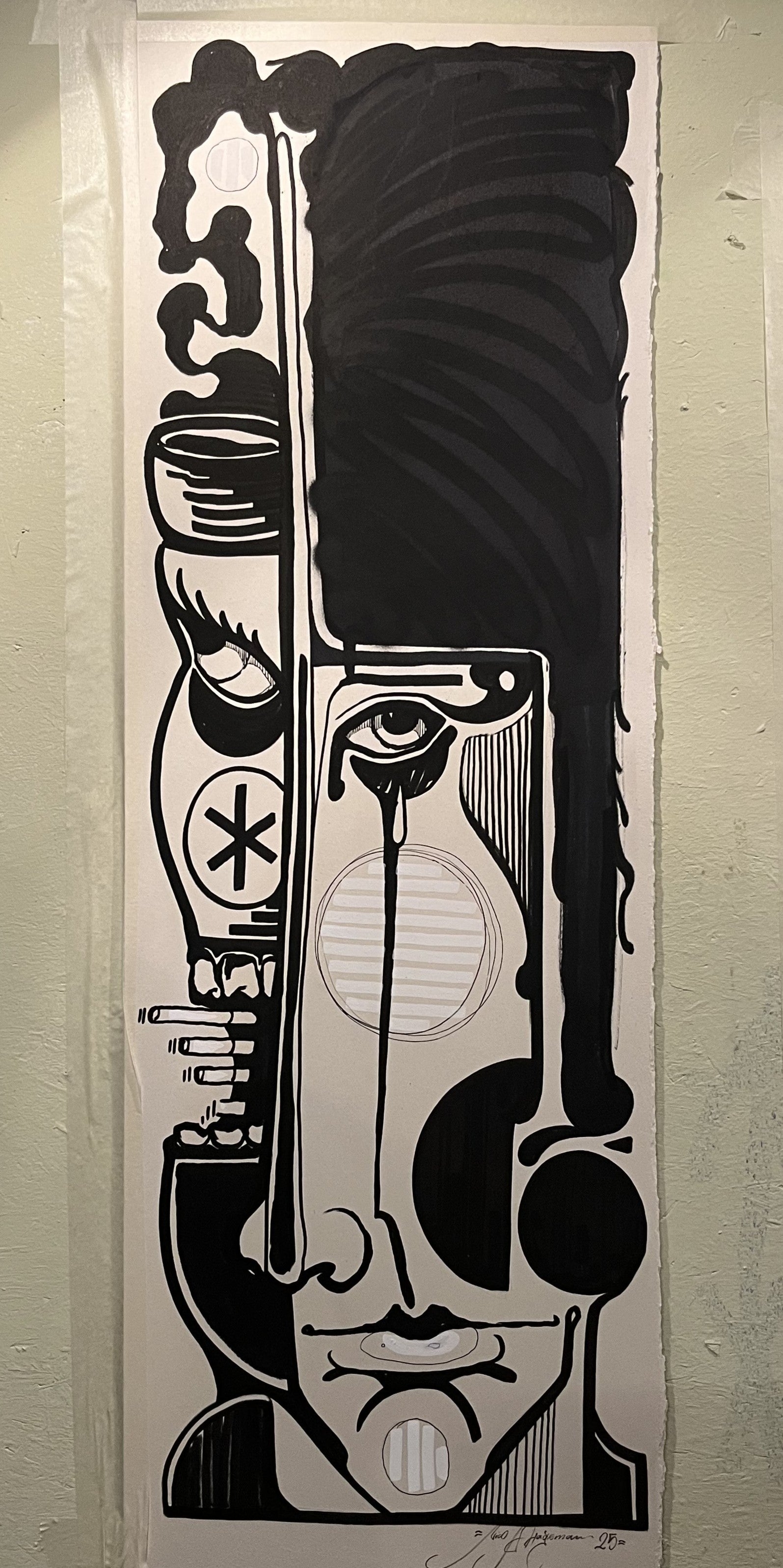 Materials: Ink spray and posca on mechanical wooden pulp board