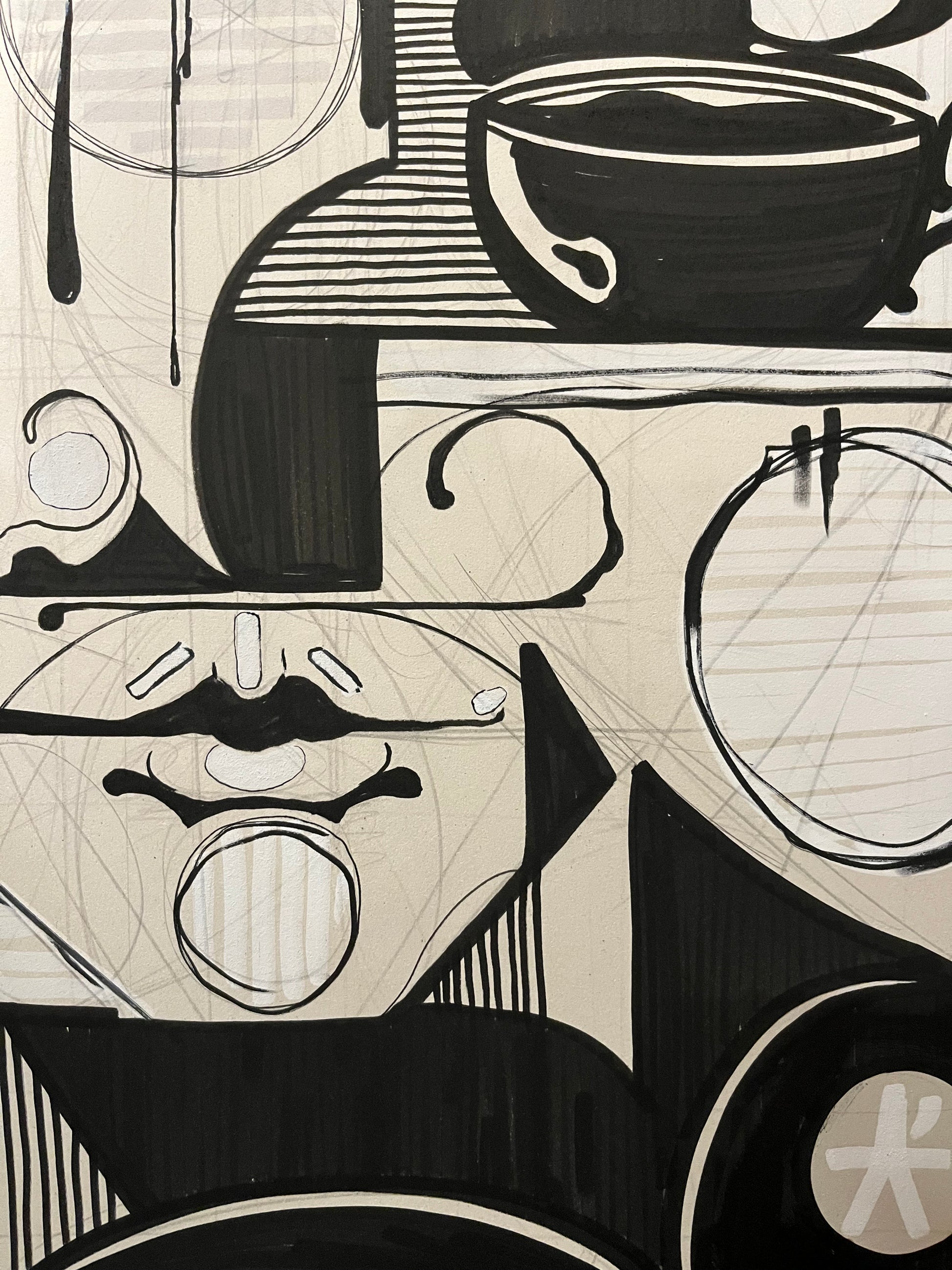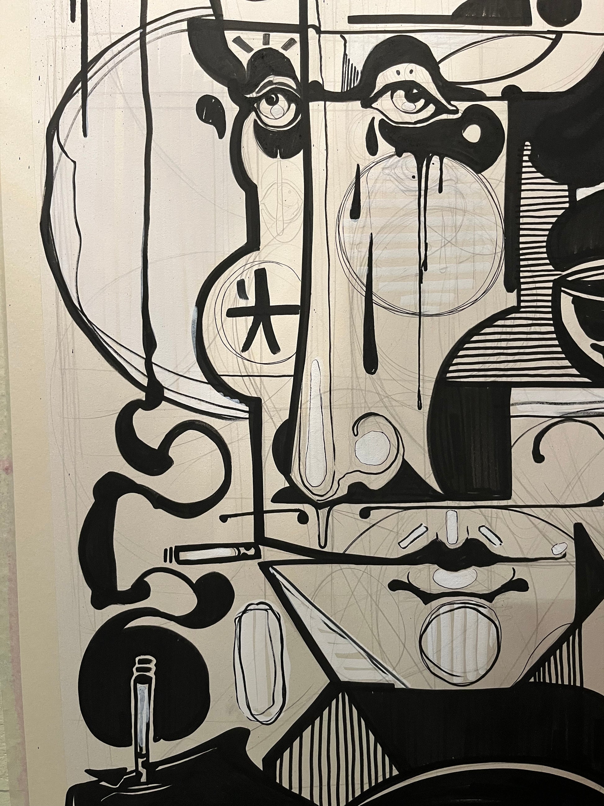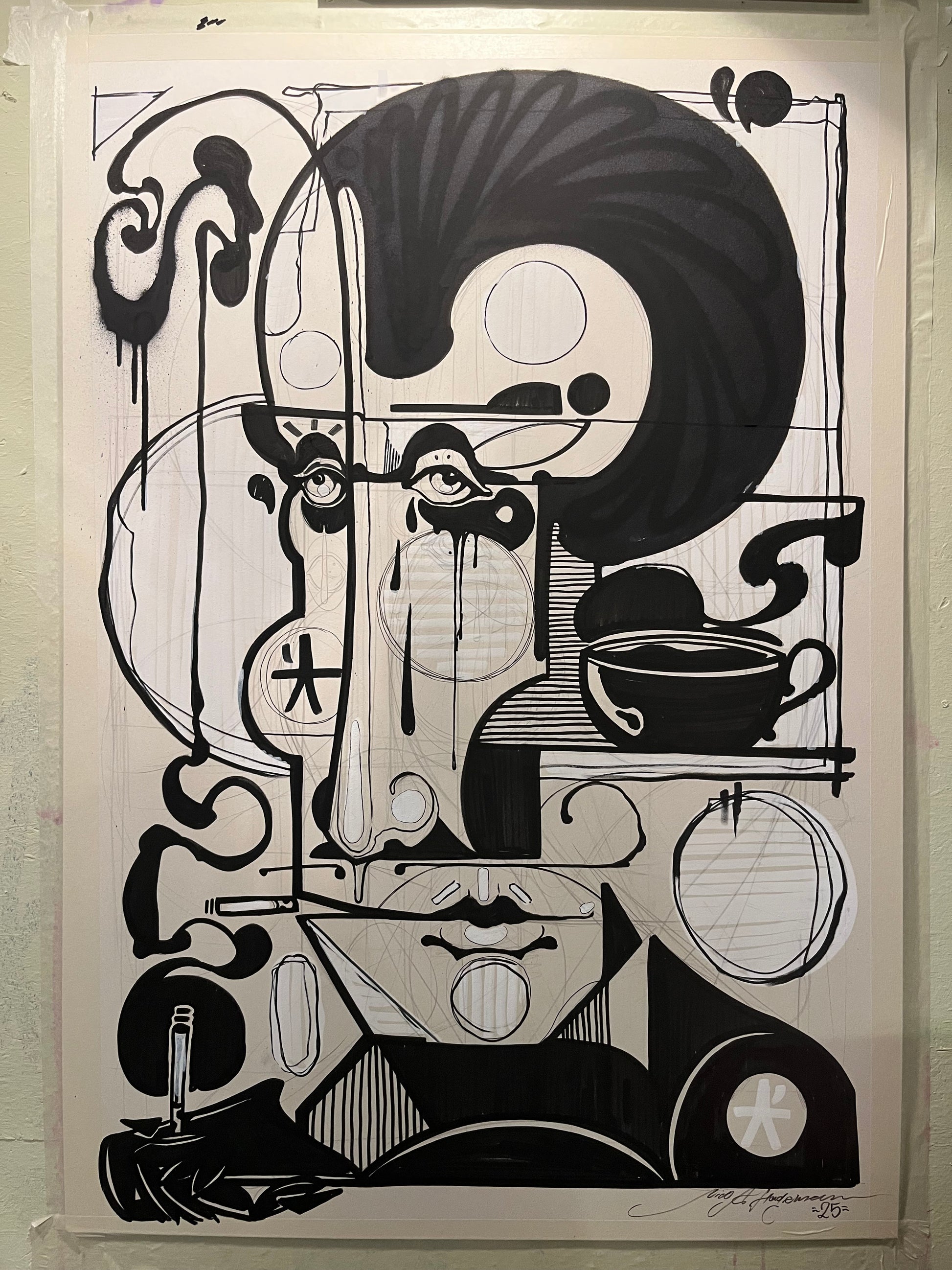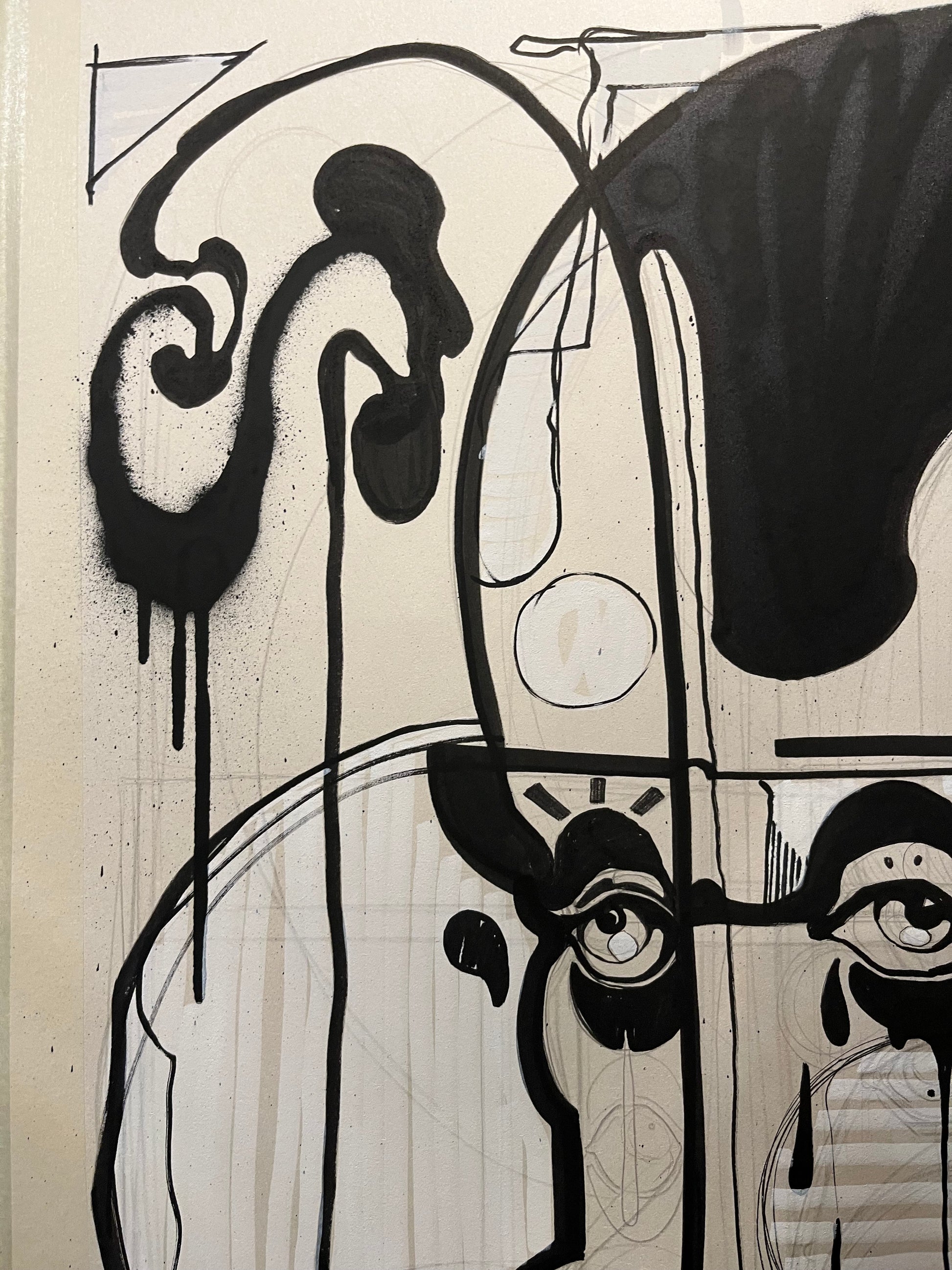 Materials: Spray acrylics and ink on mechanical woodpulp board